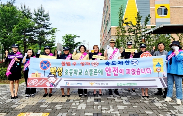 [충청뉴스큐] 안성시는 어린이보호구역 내 교통사고를 예방하고 안전한 교통문화를 조성하기 위해 30일 백성초등학교 앞에서 안성시청, 안성경찰서 안성녹색어머니회, 안성모범운전자회, 백성초등학교 등 각 기관 관계자들과 함께 어린이보호구역 교통안전 합동 캠페인을 진행했다.