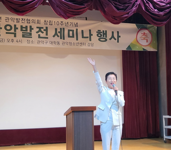 [충청뉴스큐] 서울특별시의회 문화체육관광위원회 유정희 부위원장이 5월 26일 관악발전협의회 창립 10주년 기념식 및 명품도시 관악발전 세미나에 참석해 지역주민과 함께 관악구의 미래 발전 방향에 관해 논하는 시간을 가졌다.