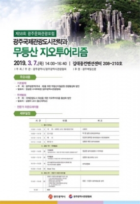 특히 관광분야 전문가, 유관기관, 학계, 여행사 관계자 등이 참여해 ‘광주국제관광도시 전략과 무등산 지오투어리즘’을 주제로 의견을 나눈다.