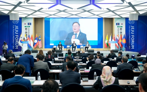 제주포럼 이틀째인 1일 오후 제주국제컨벤션센터에서 8개 국가의 의회 대표단과 6개 국가의 기업 및 국제기구 관계자 등이 참석한 가운데 ‘한-아세안 리더스 포럼’이 열렸다.