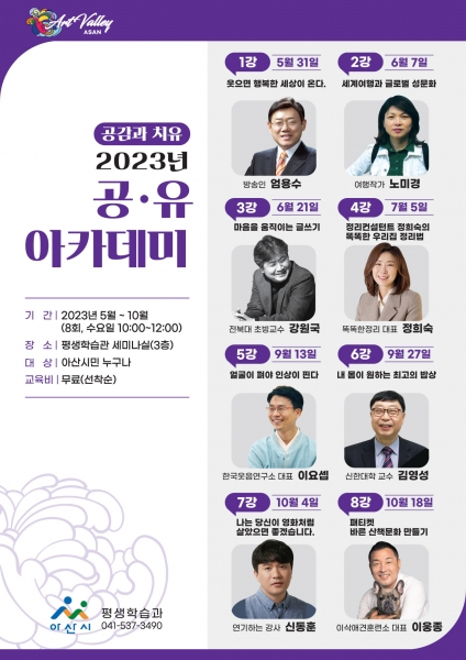 [충청뉴스큐] 아산시가 오는 7일 평생학습관에서 ‘2023 공유 아카데미’ 두 번째 이야기를 이어간다.