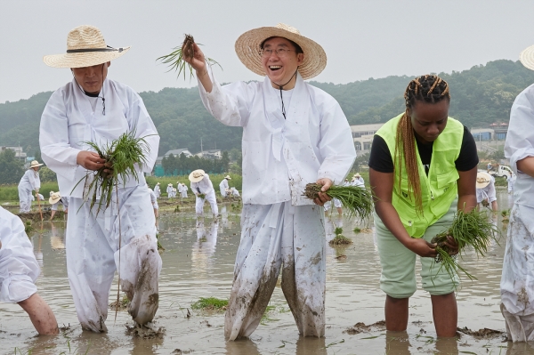 소를 이용한 전통 써레질 시연에 이어 유치원생부터 대학생, 모내기가 일상이었던 어르신들까지, 전 세대를 아우른 1200여명의 참가자들은 손으로 직접 모를 옮겨 심는 ‘손 모내기’를 체험하며 구슬땀을 흘렸다.