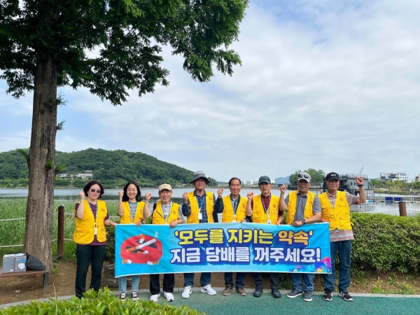 점검은 금연 지정 및 주요 민원 발생 구역 현황 확인 금연 구역 알림 스티커 부착 ‘모두를 지키는 약속 지금 담배를 꺼주세요’ 현수막 홍보 금연 관련 안내문 배부 등 다양한 방법으로 이뤄졌다.