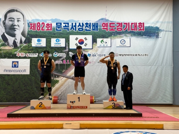 [충청뉴스큐] 아산시청 역도팀이 지난 1일 서천에서 열린 제82회 문곡서상천배 역도대회에서 정한솔 선수가 73kg급 용상 1위, 오호용 선수가 96kg급 인상 1위와 합계 2위를 차지해 금메달 2개, 은메달 1개의 쾌거를 이뤘다.