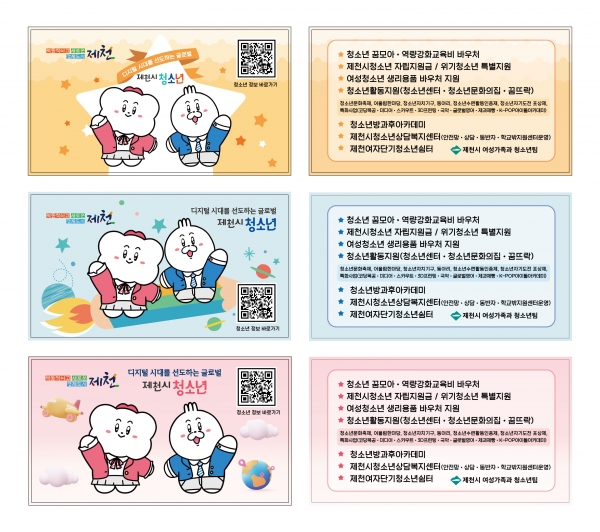 귀여움을 담당하는 제천시 캐릭터 제제천천이를 활용해 친근함을 더하고 QR코드를 넣어 휴대성도 있으면서 디지털기기에 능숙한 청소년들이 간편하게 접속할 수 있도록 만들었다.