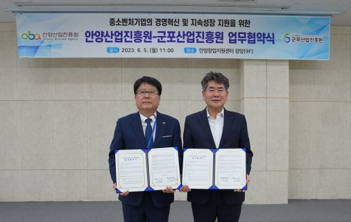 [충청뉴스큐] 안양산업진흥원은 5일 군포산업진흥원과 중소벤처기업의 경영혁신 및 지속 성장 지원을 위한 업무협약을 체결했다고 밝혔다.