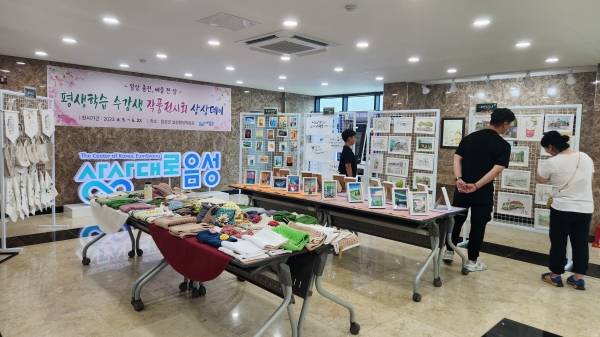 [충청뉴스큐] 음성군이 이달 23일까지 설성문화회관 1층 로비에서 ‘일상 충전, 배움 한 상’이라는 ‘상상데이’를 주제로 평생학습 프로그램 학습자들의 작품을 전시한다고 7일 밝혔다.