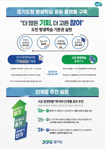 [충청뉴스큐] 경기도가 표준화된 평생학습 플랫폼을 구축해 도내 31개 시군과 공유하는 작업을 추진한다.