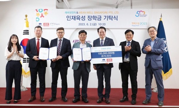 [충청뉴스큐] 안양시 인재육성재단은 지난 2일 ㈜에버넷전자와 MEAN WELL SINGAPORE PTE. LTD.로부터 1억원의 인재육성 장학금을 기탁받았다고 7일 밝혔다.