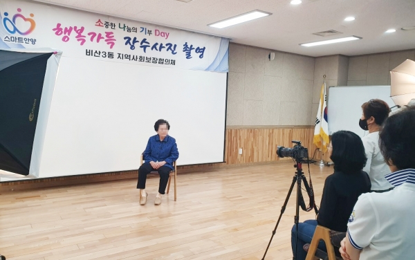 [충청뉴스큐] 안양시 비산3동 지역사회보장협의체는 지난 7일 행정복지센터 2층 강당에서 저소득 어르신들을 대상으로 ‘행복가득 장수사진 촬영’ 행사를 진행했다.