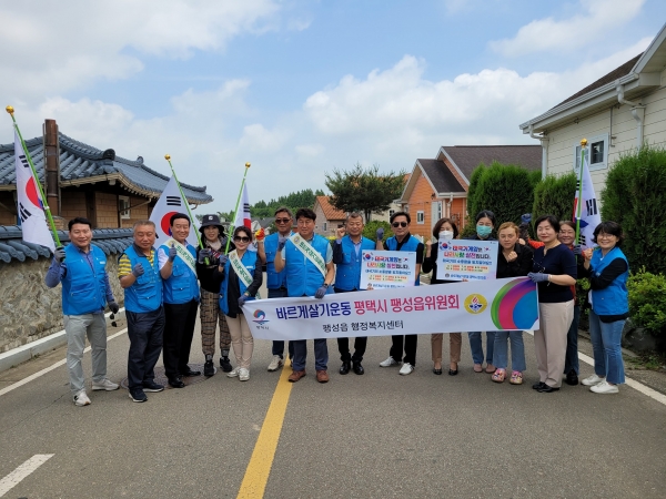 한편 바르게살기운동 팽성읍위원회는 태극기 달기 캠페인뿐만 아니라 이웃사랑 고구마 심기, 어버이날 홀몸 어르신 배식 봉사, 환경정화 활동 등 나눔과 봉사활동을 펼치며 지역사회에 꾸준히 이바지하고 있다.