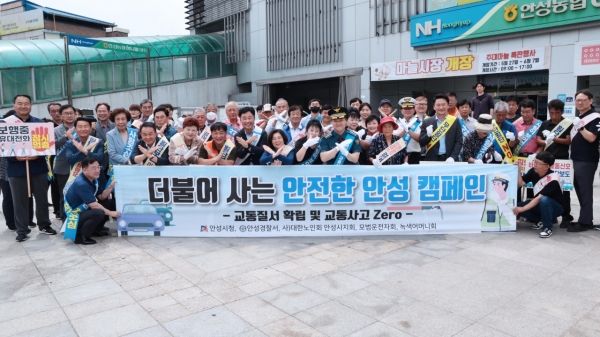 [충청뉴스큐] 안성시는 안성시의 최근 3년간 교통사고 사망사고 유형을 파악. 분석한 결과 어르신, 보행자로 사망사고 비율이 높아 보행자 및 어르신 중심으로 무단횡단 및 교통법규 준수를 집중 홍보하고자 어르신들의 활동이 많은 안성장날 인지사거리~석정삼거리 구간에서 안성시청, 안성경찰서 안성녹색어머니회, 안성모범운전자회, 대한노인회 안성시지회 등 각 기관 관계자들과 함께 ‘더불어 사는 안전한 안성’ 캠페인을 진행했다.