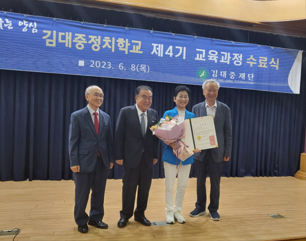 [충청뉴스큐] 서울특별시의회 문화체육관광위원회 유정희 부위원장이 6월 8일 국회의원회관에서 진행된 김대중정치학교 제4기 교육과정 수료식에 참석해 최우수상을 수상했다.