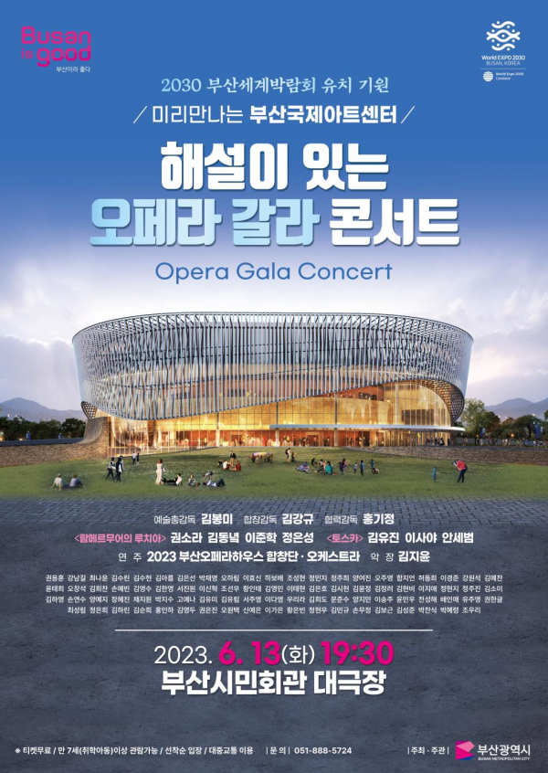 [충청뉴스큐] 부산시는 내일 오후 7시 30분 부산시민회관 대극장에서 ‘해설이 있는 오페라 갈라 콘서트’를 개최한다고 밝혔다.
