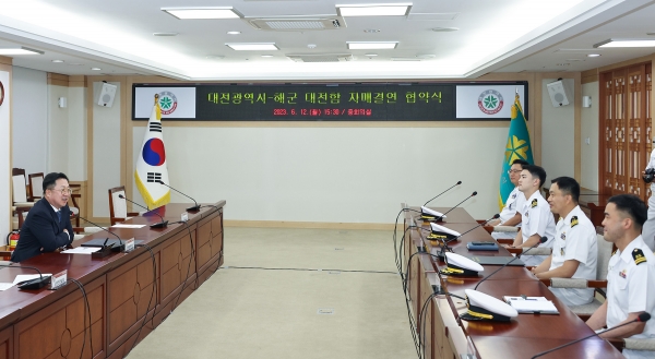 대전시는 12일 대전시청에서 이장우 대전시장과 해군 대전함 류계현 함장이 참석한 가운데, 함대 배치를 앞두고 있는 대전함과 자매결연 을 체결했다고 밝혔다.