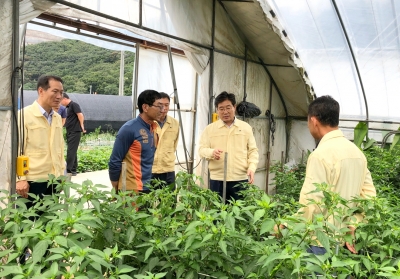 김 시장은 이날 면천면 소재 꽈리고추 하우스 단지와 순성면 사과 재배 농가, 신평면 남원포 일원 벼 침수 우려 지역 등 태풍으로 인해 피해발생이 우려되는 농업현장을 찾아 피해 대비 상황을 파악했다.