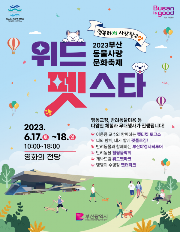[충청뉴스큐] 부산시는 오는 17일부터 18일까지 양일간 영화의전당에서 부산 동물사랑 문화축제 ‘2023 위드펫스타’를 개최한다고 밝혔다.