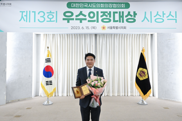우수의정대상은 대한민국시도의회의장협의회가 전국 광역의원을 대상으로 시정 현안에 대한 견제와 대안 제시, 주민 삶의 질 향상과 지역 발전에 기여하고 활발하게 의정활동을 펼쳐온 의원을 선정해 수여하는 상으로 올해 13회를 맞이한다.