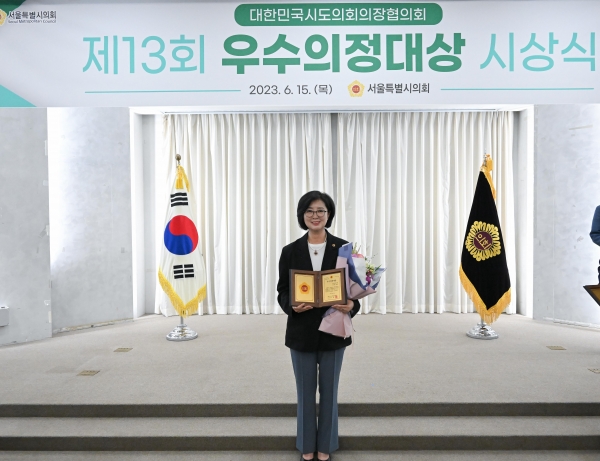우수의정대상은 ‘대한민국 시·도의회 의장협의회’ 주관하는 것으로 능동적이고 선제적인 의정활동으로 지역 발전에 크게 기여한 의원에게 수여하는 상이다.