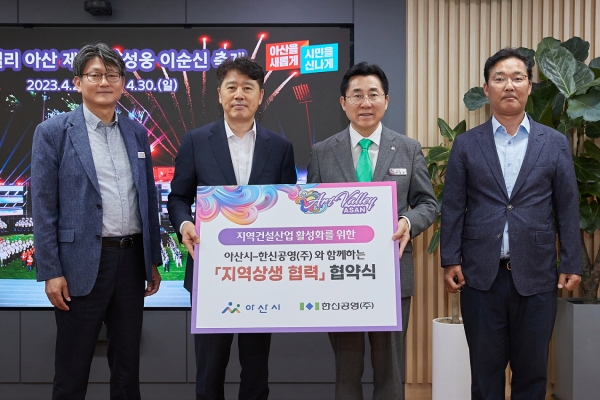 [충청뉴스큐] 아산시가 지난 21일 시장실에서 한신공영과 아산시 지역건설산업 활성화를 위한 지역 상생협력 업무 협약을 체결했다.