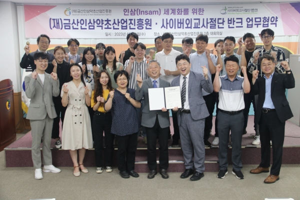 [충청뉴스큐] 금산인삼약초산업진흥원은 지난 21일 진흥원 대회의실에서 사이버외교사절단 반크와 인삼 세계화를 위한 업무협약을 체결했다.