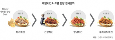 특히 치즈치킨 반마리의 나트륨 함량은 하루기준치의 최대94.1%에 달하며, 간장치킨도 최대 80.5%로 조사됐다.