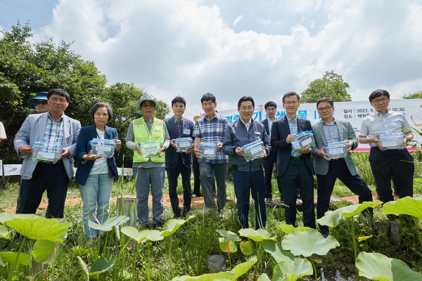 박 시장은 이어 “아산시는 멸종위기종 복원과 생물다양성 증진을 위해 물장군 살리기 사업뿐 아니라 반딧불이 서식지 조성 및 관리 등 여러 지역별 맞춤형 사업을 추진할 계획”이며 “생태계 보호를 위한 민·관·기업의 아름다운 협력이 다양한 분야에서도 계속 이어지길 기대한다”고 말했다.