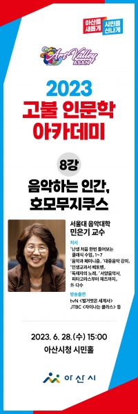 [충청뉴스큐] 아산시가 오는 28일 시청 시민홀에서 금관 5중주 특별연주와 함께하는 민은기 서울대 교수의 ‘음악 하는 인간, 호모 무지쿠스’ 특강을 진행한다.