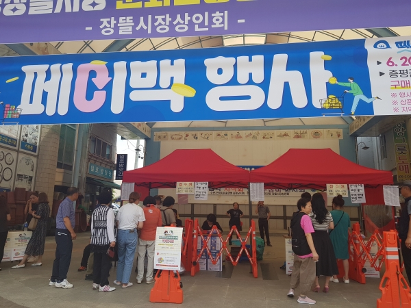 이번 행사는 행사기간 중 소비자들이 지역 내 상점에서 5만원이상 카드나 현금으로 구매나 소비한 영수증을 가지고 장뜰시장 다목적광장에 설치된 행사 부스에 제출하면 1만원권의 증평사랑으뜸상품권으로 돌려주는 방식으로 진행됐다.