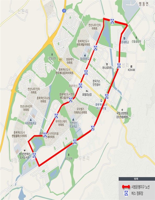 조병옥 음성군수는 “이번 사업 선정으로 음성군·진천군으로 이분화된 혁신도시의 한계를 극복하고 대중교통 사각지대를 해소할 것으로 기대된다”며 “의료 및 생활 분야의 스마트시티 챌린지 사업과 더불어 우리 군이 스마트도시로 거듭날 수 있도록 노력하겠다”고 밝혔다.