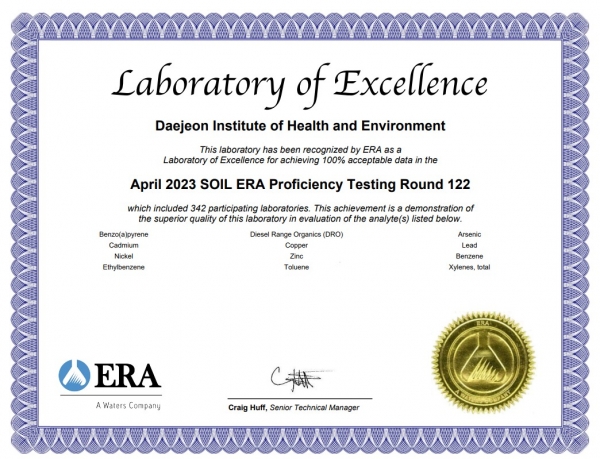 이번 인증 획득으로 대전보건환경연구원은 수질 분야 4년, 먹는 물 분야 6년 연속 인증을 받아 시험·검사 능력의 우수성을 국제적으로 확인 받았다.