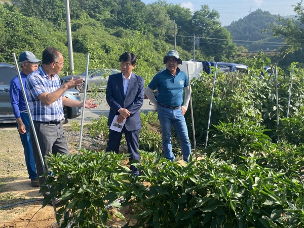 [충청뉴스큐] 금산군은 지난 23일 제원면 수당리 일원에서 고추 막덮기 시범사업 중간평가회를 개최했다.