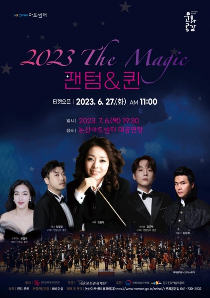 [충청뉴스큐] 논산문화관광재단이 오는 7월 6일 오후 7시 30분 논산아트센터에서 배하필하모닉 오케스트와 함께하는 ‘2023 The Magic, 팬텀&퀸’을 진행한다.