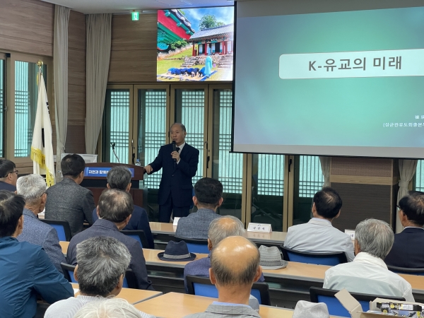 강연에 나선 성균관 유도회 총 본부회장인 최영갑 철학박사는 “현재의 시대 흐름을 정확하게 살펴보며 전문가 양성, 젊은 인재 확보, 여성 흡수 노력, 재정 확보, 덕목의 현대적 해석 등을 구체적으로 진행해 국민이 행복한 유교를 만들고 말보다 실천을 하는 유림이 되자”고 역설했다.