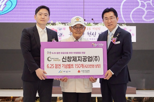 신창제지공업은 6.25 전쟁에 참전하신 분들의 헌신에 답하고자 이번 후원 물품을 마련했으며 벨트는 6.25 참전 국가유공자회 아산지회를 통해 참전 유공자분들에게 전달될 예정이다.