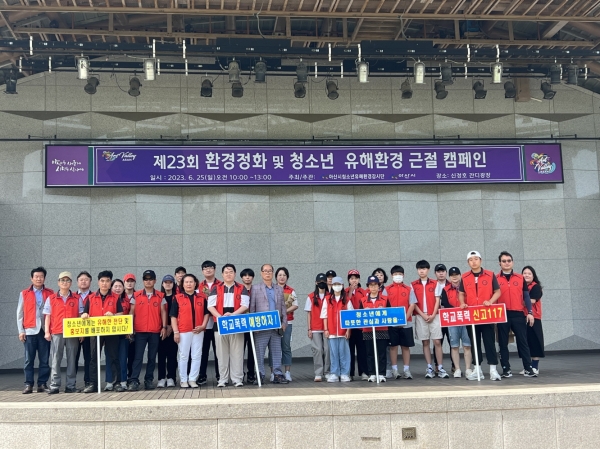 [충청뉴스큐] 한국112무선봉사단과 아산시청소년유해환경감시단이 주최한 ‘2023 제1회 환경정화 및 유해환경 근절 캠페인’이 지난 25일 신정호수 공원과 온양5동 일대에서 개최됐다.