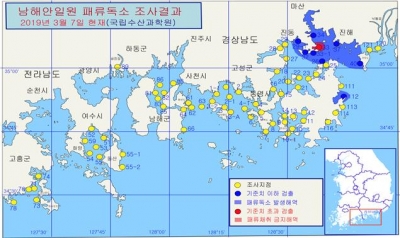 패류독소 기준치를 초과한 해역에 대해 경남도는 패류 채취금지조치를 취하고, 현수막 게시 및 리플릿 배부를 통해 어업인 및 여행객에게 홍보하는 등 안전관리를 강화하도록 했다.