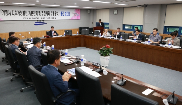 [충청뉴스큐] 계룡시는 지난 26일 시청 상황실에서 ‘계룡시 지속가능발전 기본전략 및 추진계획 수립’을 위한 연구용역 중간보고회를 개최했다고 밝혔다.