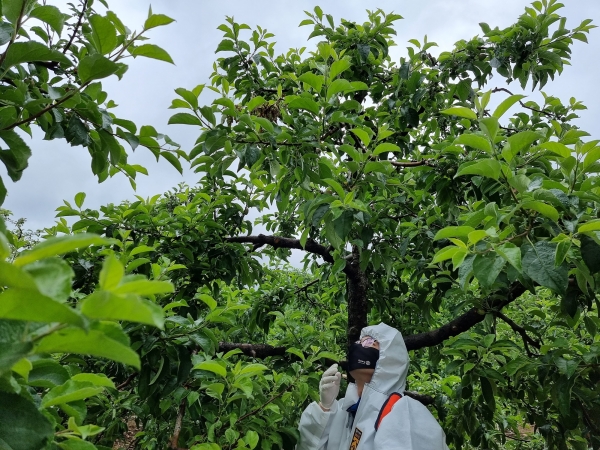군 관계자는 “이번 장마는 장기간 지속됨에 따라 예방적 약제 방제가 매우 중요하다”며 “과수농가는 장마철 과원 관리에 철저를 기해달라”고 당부했다.