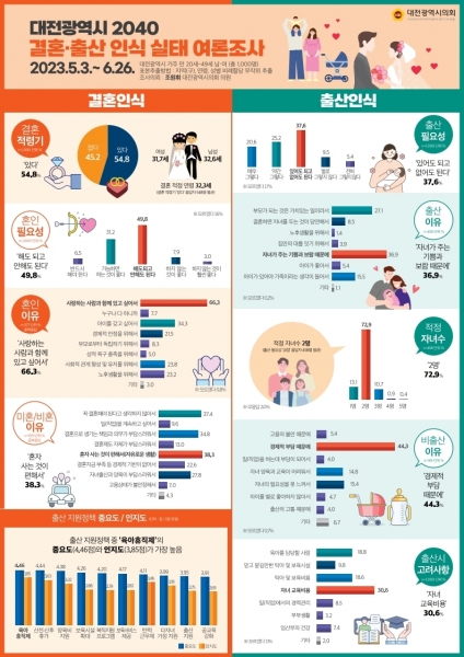 [충청뉴스큐] 대전시의회 조원휘 의원은 대전지역 2040세대 청년들의 결혼과 출산에 대한 가치관 조사를 위해 여론조사를 실시하고 그 결과를 공개했다.