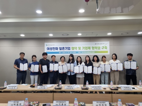 박성룡 센터장은 “협약에 함께해 주신 11개 업체 대표와 관계자분들께 깊이 감사드린다 여성 친화적 기업문화 조성과 여성 취업 지원·고용 유지를 위해 최선을 다하겠다”고 말했다.