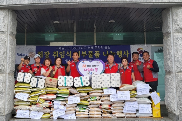 [충청뉴스큐] 국제로타리3680지구 9지역 서해로타리클럽이 지난 29일 회장 취임식 기부 물품을 지역 어려운 이웃들에게 나눠주며 서면 ‘나눔의 꽃 14호’로 선정됐다.