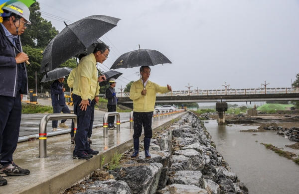 또한 공사장 주변 안전관리를 위한 시설물 관리 실태 수방 자재·장비 확보 수량 적정 여부 사업장 내 유수소통 지장물 제거 상태 지반침하·흙막이 시설상태 등을 집중 점검하며 주요 하천 배수시설을 살폈다.