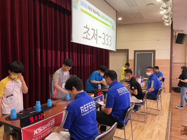 [충청뉴스큐] 아산교육지원청 특수교육지원센터에서는 6월 27일 아산 관내 특수학급 소속 특수교육대상학생 114명을 대상으로 스포츠스태킹 대회를 개최했다.