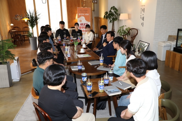 [충청뉴스큐] 박범인 금산군수는 민선8기 출범 1년을 맞아 지난 3일 금산군청 인근 카페에서 새내기 공무원과의 대화에 나섰다.