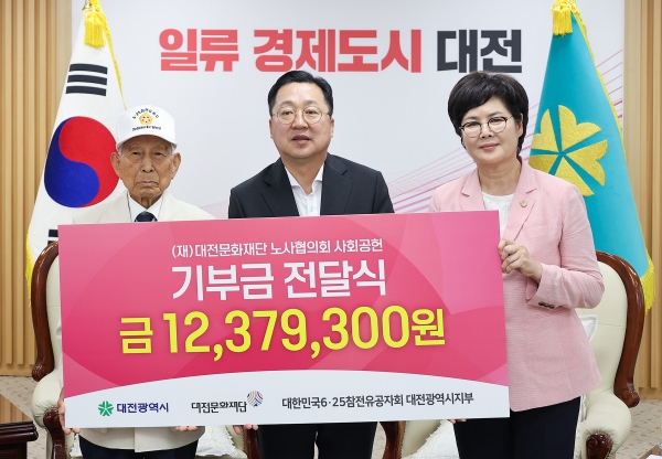 이날 기탁식에는 이장우 대전시장, 백춘희 대전문화재단 대표이사, 이정재 대전문화재단 노사협의회의장, 양철순 6.25.참전유공자회 대전광역시지부장과 심춘길 사무처장이 함께했다.