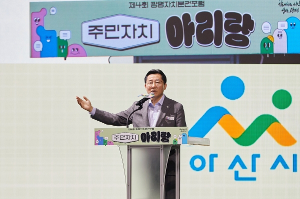 [충청뉴스큐] 박경귀 아산시장이 4일 광명시 아이벡스 스튜디오에서 열린 제4회 광명 자치분권포럼 ‘주민자치 아리랑’에서 아산시의 자치분권 우수 사례 발표와 함께 지방자치가 나아가야 할 방향성을 제시했다.