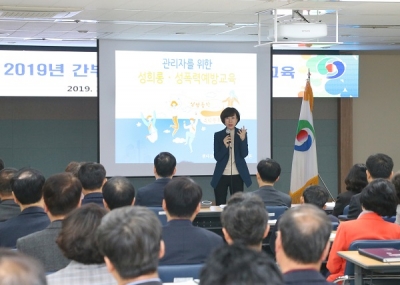 시는 유정흔 양성평등교육진흥원 4대폭력 예방교육 전문강사를 초빙해 직장 내 4대폭력 예방을 위한 간부공무원의 역할과 그 중요성을 배우는 시간을 가졌다.