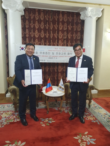 김기웅 서천군수는 몽골 순방 1일 차인 4일 몽골정부 국빈관에서 상호우호증진 및 문화예술교류 협약식을 진행했다.