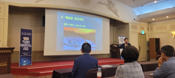 [충청뉴스큐] 박경귀 아산시장이 5일 온양관광호텔에서 열린 ‘명품 CEO아카데미’ 수강자 50여명을 대상으로 기업인을 위한 인문학 특강을 했다.